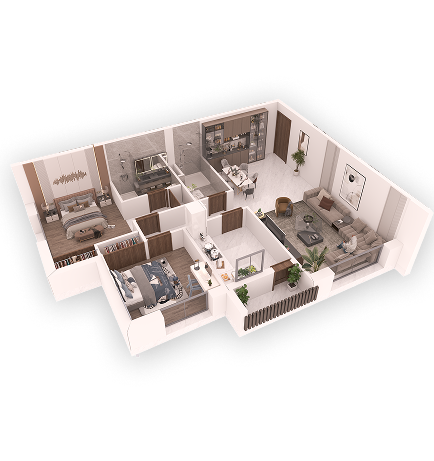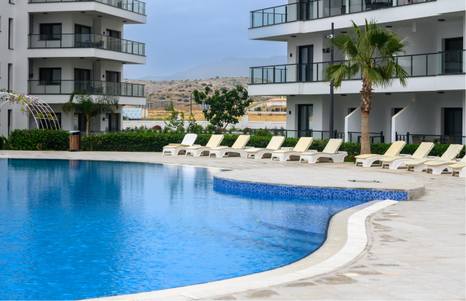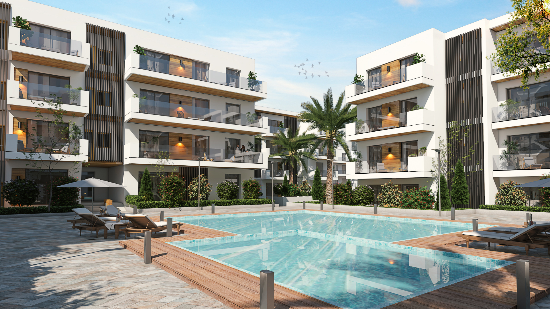 Les immeubles s’ouvrent sur des jardins paisibles et des allées verdoyantes, ils disposent de 5 piscines communes, d’aires de jeux pour enfants, et de voies piétonnes aménagées. Les terrasses donnent sur des espaces respirants, baignés de lumière et de calme.